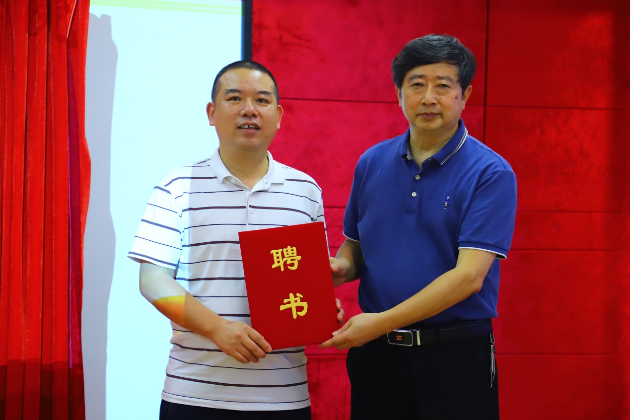 學(xué)校領(lǐng)導(dǎo)和嘉賓共同為“潘雄變電運(yùn)行技能大師工作室”掛牌,易健民為潘雄頒發(fā)兼職教授證書(shū)。
