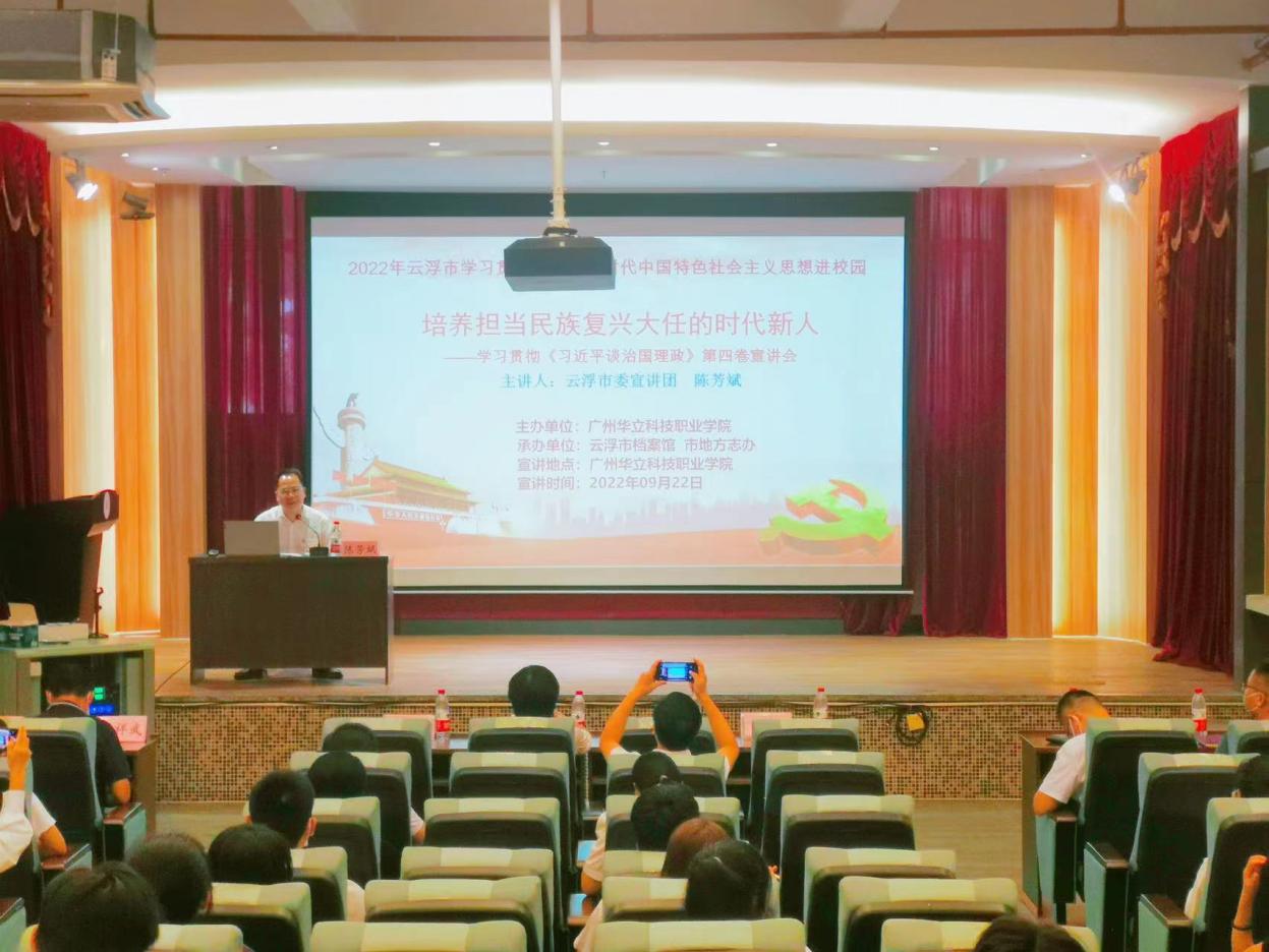 教育興則國家興,教育強(qiáng)則國家強(qiáng)。培養(yǎng)什么樣的人、如何培養(yǎng)人以及為誰培養(yǎng)人,一直是習(xí)近平總書記強(qiáng)調(diào)的重中之重。為了推動廣大師生進(jìn)一步增強(qiáng)學(xué)思想、悟思想、用思想的自覺性與堅定性;不斷提高政治判斷力、政治領(lǐng)悟力、政治執(zhí)行力。9月22日,廣州華立科技職業(yè)學(xué)院云浮校區(qū)特邀云浮市檔案館館長、云浮市人民政府地方志辦公室主任、云浮市委宣講團(tuán)成員陳芳斌來校開展學(xué)習(xí)貫徹《習(xí)近平談治國理政》第四卷專題報告會。