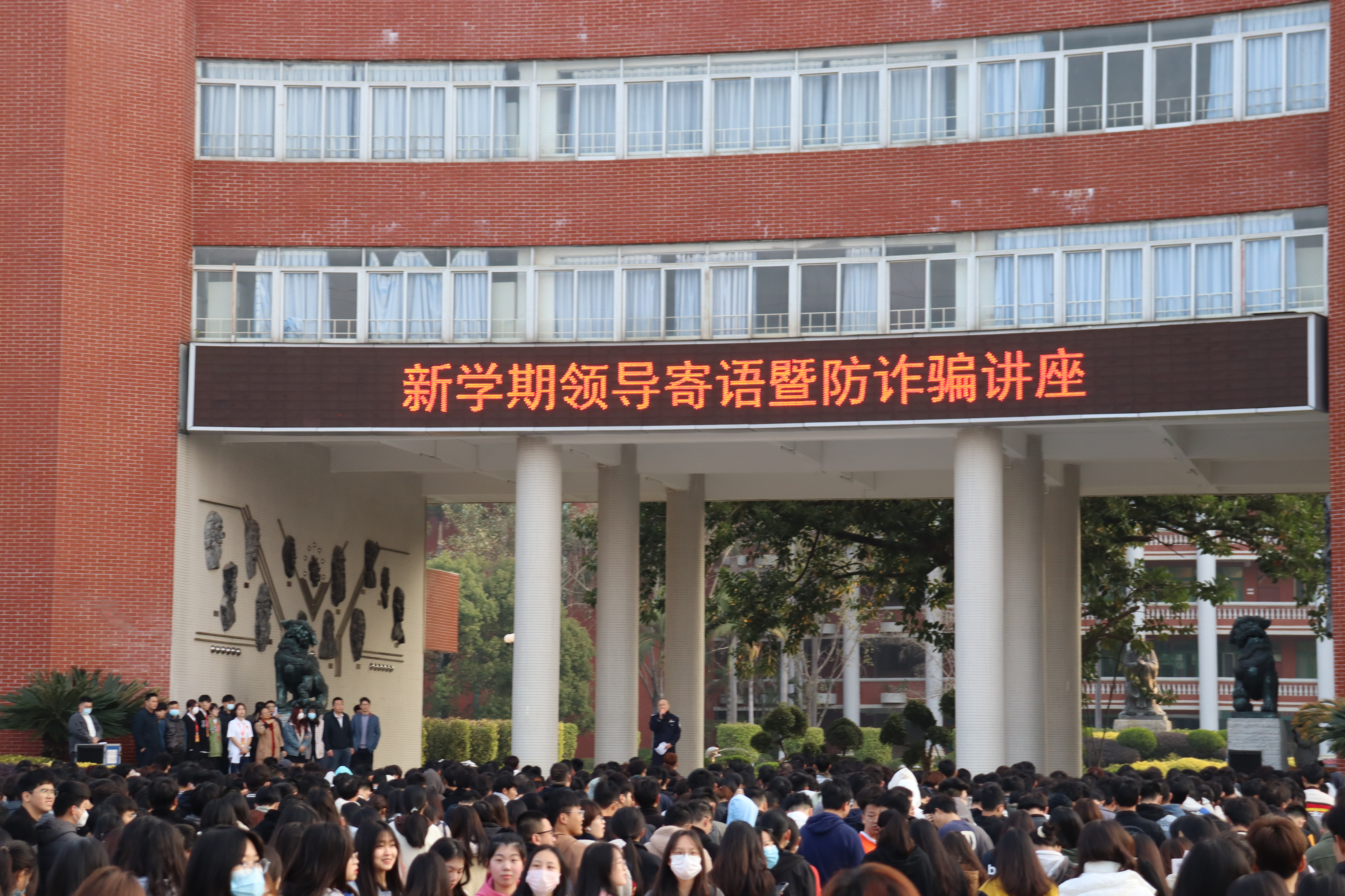 早上7點(diǎn),綜合樓廣場(chǎng)國(guó)旗下人潮涌動(dòng),各班級(jí)列隊(duì)整齊,等待活動(dòng)開始,講座開始前,由副校長(zhǎng)高堯來作新學(xué)期寄語。高校長(zhǎng)強(qiáng)調(diào),新學(xué)期要把校園安全工作作為首要任務(wù),安全問題不容忽視,要常抓不懈,落到實(shí)效,全體師生要提高安全防范意識(shí),做維護(hù)校園安全的主人,共同筑起思想、行為和生命的安全長(zhǎng)城。隨后,賴榮慶警官作防詐騙專題知識(shí)輔導(dǎo)。首先,賴警官針對(duì)大學(xué)生近期面臨的詐騙案件進(jìn)行分析,強(qiáng)調(diào)了目前的詐騙方式和類型復(fù)雜多變且具有很強(qiáng)迷惑性,在校學(xué)生與社會(huì)接觸面不廣,思想較單純,缺乏識(shí)別陷阱的能力,越來越多的大學(xué)生受不法分子誘惑而陷入詐騙的泥潭,嚴(yán)重影響生活、學(xué)習(xí)、工作,需要我們加強(qiáng)關(guān)注,堅(jiān)決守好“錢袋子”。同時(shí),通過典型案例并結(jié)合我院師生發(fā)生幾起真實(shí)案例,列舉了校園詐騙傳銷、校園貸、短信詐騙、電話詐騙、網(wǎng)絡(luò)詐騙等多種詐騙類型,向現(xiàn)場(chǎng)師生分析了詐騙案件發(fā)生的主要原因,并重點(diǎn)圍繞提高師生自我防范意識(shí)和自我有保護(hù)能力提供了極具針對(duì)性地應(yīng)對(duì)策略與方法,提醒師生要時(shí)刻保持防詐意識(shí),果斷識(shí)破各類詐騙行為,增強(qiáng)自我防范能力,保障生命財(cái)產(chǎn)安全。