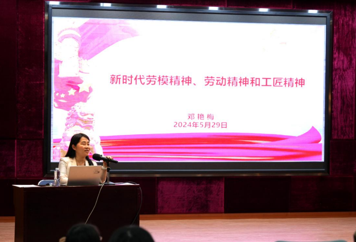 為了大力弘揚(yáng)“勞動(dòng)光榮、技能寶貴、創(chuàng)造偉大”的時(shí)代風(fēng)尚,5月29日下午,作為“2024年職業(yè)教育周”系列活動(dòng)之一,學(xué)校特邀“全國勞動(dòng)模范、南粵工匠”鄧艷梅同志在學(xué)校東區(qū)圖書館1號(hào)報(bào)告廳開展了以“新時(shí)代勞模精神、勞動(dòng)精神、工匠精神”為主題的專題講座。來自全校不同專業(yè)的在校學(xué)生代表、勞動(dòng)教育課任課老師等近300名師生參加了此場講座。