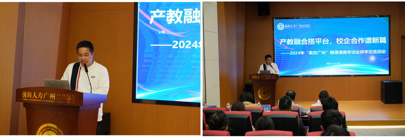 2024年12月3日下午,我校聯合前海人壽廣州總醫(yī)院和廣州市增城區(qū)人力資源和社會保障局在前海人壽廣州總醫(yī)院門診一樓階梯會議室共同舉行了主題為“產教融合搭平臺,校企合作譜新篇——2024年“贏在廣州”穗港澳青年訪企研學交流活動”。
