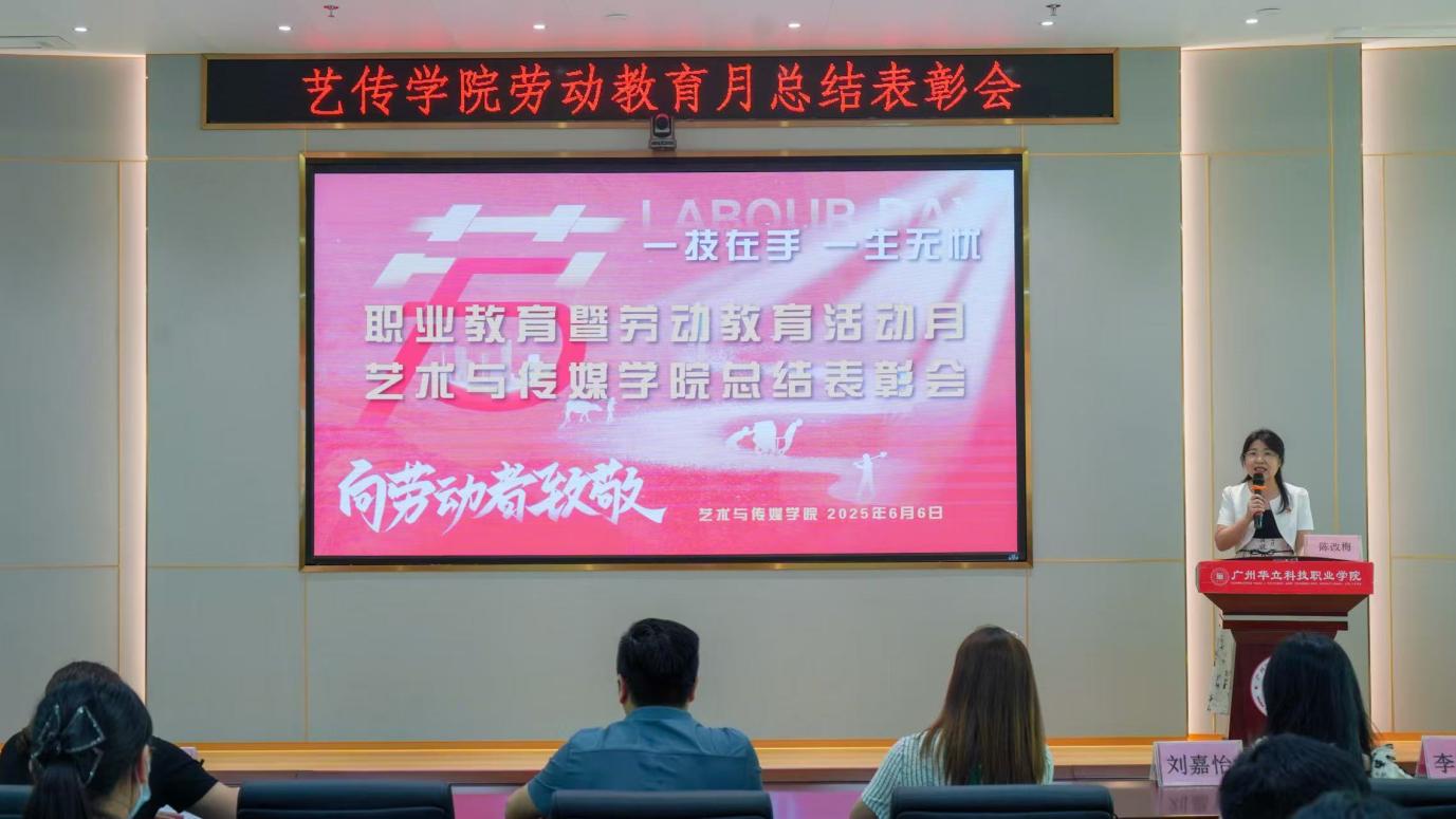 2025 年 6 月 6 日星期五下午 3:30,"一技在手,一生無(wú)憂(yōu)" 職業(yè)教育暨勞動(dòng)教育活動(dòng)月藝傳學(xué)院總結(jié)表彰會(huì)在圖書(shū)館 104 隆重舉行。學(xué)院領(lǐng)導(dǎo)、系主任、各專(zhuān)業(yè)教師、全體輔導(dǎo)員、受表彰學(xué)生代表、學(xué)生干部代表等齊聚一堂,共同總結(jié)活動(dòng)月成果,表彰優(yōu)秀師生,見(jiàn)證職業(yè)教育與勞動(dòng)教育的階段性碩果。會(huì)議由學(xué)院黨總支書(shū)記、副院長(zhǎng)陳改梅主持。