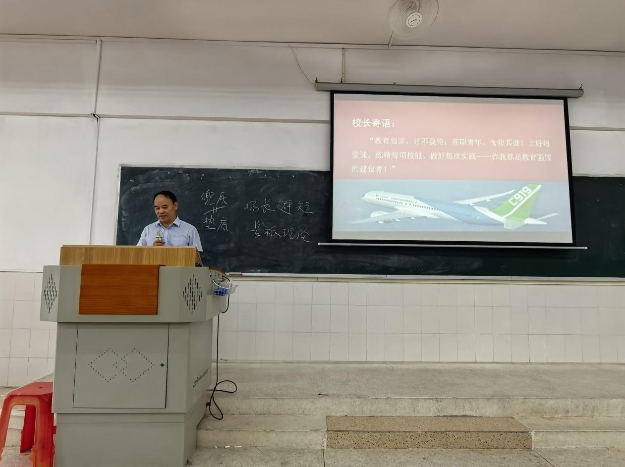 廖校長在最后總結時寄語,職業(yè)教育現(xiàn)代化是教育現(xiàn)代化的重要基石,高職青年應秉持精益求精的工匠精神和愛崗敬業(yè)的職業(yè)態(tài)度,在實現(xiàn)中國式現(xiàn)代化征程中貢獻“職教力量”。