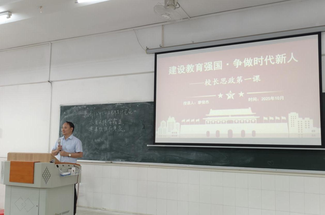 11月7日下午,我校黨委副書記、校長廖俊杰教授在圖書館501室給電力與智能制造學院學生開講以“建設教育強國·爭做時代新人”為主題的思政第一課。課程以貫徹黨的二十大、二十屆三中、四中全會精神為主線,結合我國教育發(fā)展歷程與職業(yè)教育實踐,引導學生厚植家國情懷,立志成為新時代的棟梁之才。