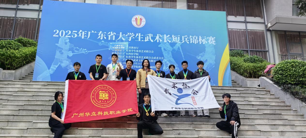 2025年11月22-23日,由廣東省教育廳、廣東省大學(xué)生體育藝術(shù)聯(lián)合會主辦的廣東省大學(xué)生武術(shù)長短兵錦標賽在廣東科技學(xué)院圓滿落幕。廣州華立科技職業(yè)學(xué)院武術(shù)長短兵隊 首次亮相省級賽場,10名參賽選手奮勇拼搏,最終斬獲2枚金牌、5枚銅牌,并取得團體第七的好成績,實現(xiàn)“首次參賽即奪金”的歷史性突破,用實力書寫華立體育新篇章!