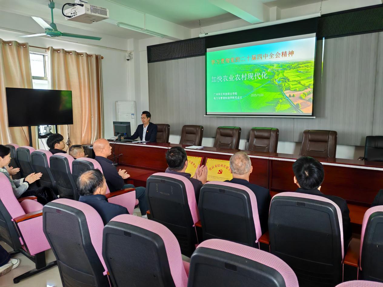 11月20日,電力與智能制造學(xué)院黨總支書記褚玉峰、教師黨支部書記孫令真等一行五人前往廣州市增城區(qū)小樓鎮(zhèn)江坳村,向江坳村干部及工作人員宣講黨的二十屆四中全會精神。江坳村黨總支書記黃文千、主任黃簡端、監(jiān)委主任黃錦鐘等8名村委委員參加了這次宣講會。