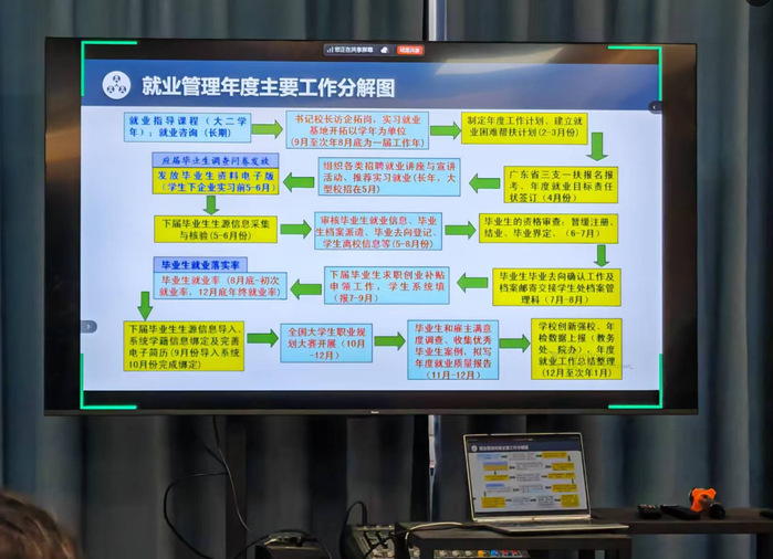 隨后由學(xué)校招生就業(yè)處就業(yè)指導(dǎo)科陳漢華科長(zhǎng)對(duì)學(xué)校全年就業(yè)主要工作開展、業(yè)務(wù)對(duì)接和部門架構(gòu)以及所涉及的就業(yè)管理平臺(tái)均進(jìn)行了詳細(xì)的業(yè)務(wù)培訓(xùn)。陳科長(zhǎng)重點(diǎn)培訓(xùn)了“廣東大學(xué)生就業(yè)創(chuàng)業(yè)管理平臺(tái)”院校端的操作設(shè)置、審核學(xué)生畢業(yè)去向和檔案信息注意事項(xiàng),同時(shí)對(duì)系統(tǒng)操作容易出現(xiàn)的問(wèn)題均作了一一分解。接著學(xué)校招生就業(yè)處就業(yè)指導(dǎo)科的肖一航老師針對(duì)應(yīng)屆畢業(yè)生申領(lǐng)求職創(chuàng)業(yè)補(bǔ)貼的系統(tǒng)操作、申報(bào)注意事項(xiàng)和在審核中容易出錯(cuò)的問(wèn)題均做了重點(diǎn)分解。最后由陳漢華科長(zhǎng)再根據(jù)全國(guó)就業(yè)管理平臺(tái)操作系統(tǒng)對(duì)在場(chǎng)的大三輔導(dǎo)員老師進(jìn)行了業(yè)務(wù)培訓(xùn),同時(shí)完成了在坐大三輔導(dǎo)員老師加入微信工作群的集中管理,方便了通知的下發(fā)以及后期業(yè)務(wù)問(wèn)題的咨詢與解答。