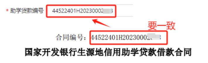 a.選擇曾獲得國(guó)家助學(xué)貸款的需要填寫助學(xué)貸款合同編號(hào)【系統(tǒng)欄目名稱為:助學(xué)貸款編號(hào),實(shí)際應(yīng)填寫助學(xué)貸款合同編號(hào)】,貸款合同編號(hào)一般在紙質(zhì)版貸款合同首頁的最上方中間位置,由20位字符組成,規(guī)則是:地區(qū)代碼+01H+貸款年份+順序號(hào)碼。舉例:44142401H2023000****【以上規(guī)則適用國(guó)家開發(fā)銀行的助學(xué)貸款,其他銀行提供的助學(xué)貸款則不符合】