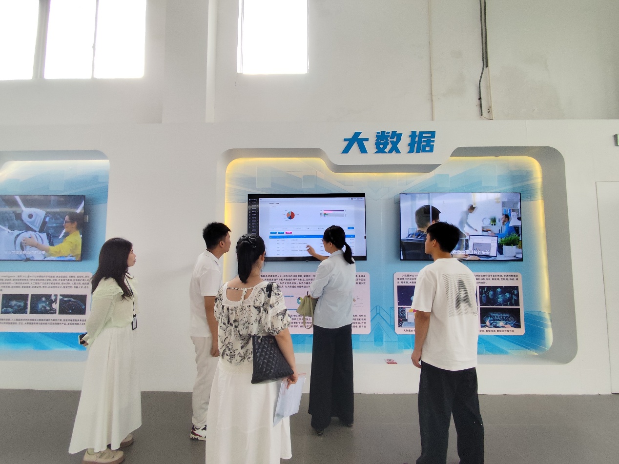 隨后,老師們參觀了企業(yè)科技成就展板,并重點介紹了其在大數(shù)據(jù)技術(shù)領(lǐng)域的創(chuàng)新應(yīng)用。鐘經(jīng)理指出,公司已將大數(shù)據(jù)技術(shù)與教學(xué)平臺深度融合,打造出能智能分析學(xué)生各階段學(xué)習(xí)情況、為其定制個性化學(xué)習(xí)計劃的智能平臺。同時,他感謝我院持續(xù)為企業(yè)輸送優(yōu)秀人才,并承諾將繼續(xù)為實習(xí)生提供最優(yōu)質(zhì)的教學(xué)資源。