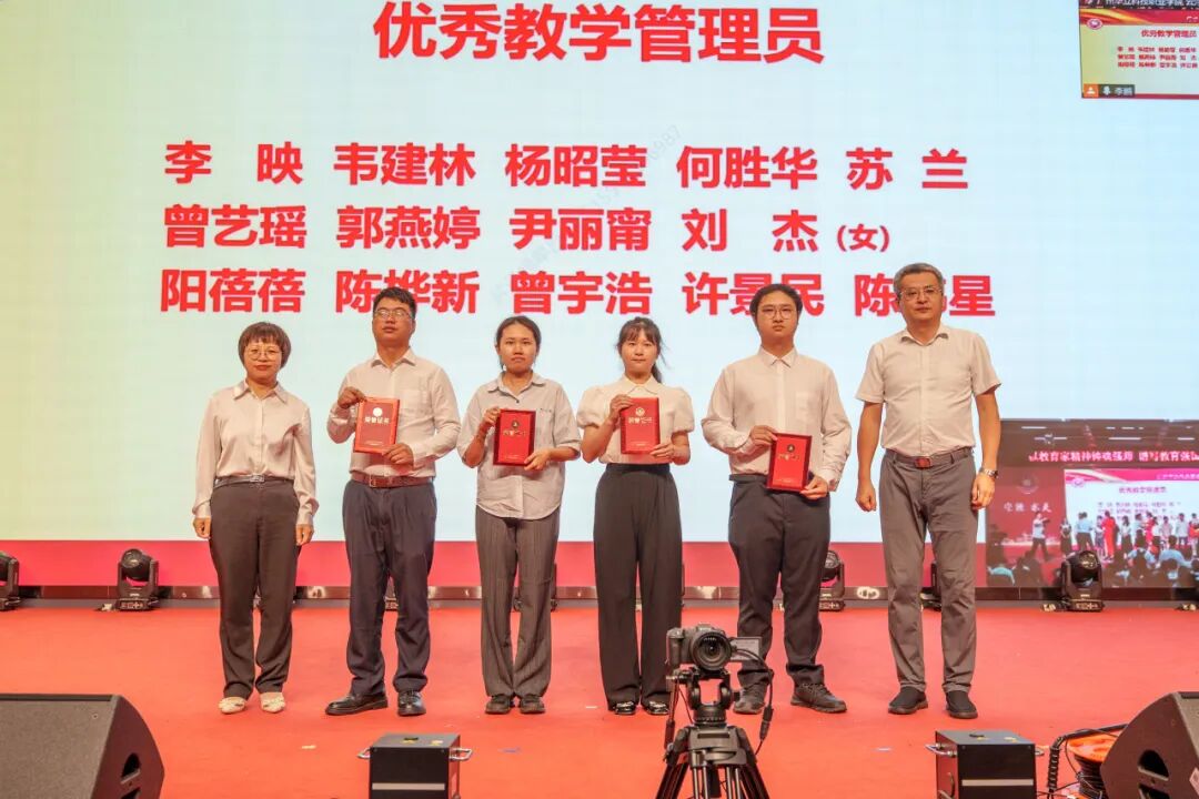 大會(huì)隆重表彰了過去一學(xué)年在教育教學(xué)、科研管理、學(xué)生工作、管理服務(wù)等方面涌現(xiàn)出的先進(jìn)集體和個(gè)人。廖俊杰、陳良聲等校領(lǐng)導(dǎo)分別為獲得表彰的集體代表和教師頒獎(jiǎng)。