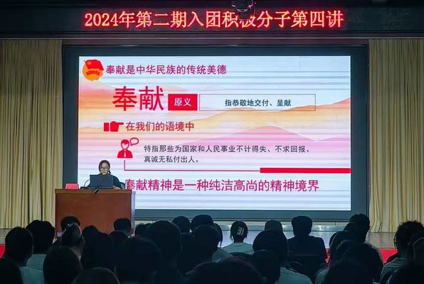 教育學(xué)院團(tuán)委書記吳麗聰老師帶來入團(tuán)積極分子第四講——《我奉獻(xiàn),我快樂》。吳麗聰老師從奉獻(xiàn)的定義出發(fā),闡述其為不計得失、不求回報、真誠無私付出的高尚精神境界,并強調(diào)奉獻(xiàn)是中華民族傳統(tǒng)美德,從古代神話故事到近現(xiàn)代英雄事跡,都彰顯著這一美德的傳承。在新時代,共青團(tuán)的發(fā)展與先進(jìn)性、純潔性的保持離不開奉獻(xiàn)精神。吳麗聰老師還列舉了入團(tuán)動機(jī)不純、奉獻(xiàn)精神缺失的表現(xiàn),強調(diào)團(tuán)要保持先進(jìn)性,必須倡導(dǎo)毫無私心、實打?qū)嵡页志玫姆瞰I(xiàn)。