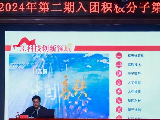 團(tuán)委辦公室張敏松老師講授入團(tuán)積極分子第五講——《我和我的祖國》。課程圍繞共青團(tuán)相關(guān)內(nèi)容展開,引導(dǎo)入團(tuán)積極分子明確自身責(zé)任與使命,積極投身國家建設(shè)與發(fā)展,讓他們深刻理解共青團(tuán)的使命與性質(zhì),明晰新時代青年的責(zé)任擔(dān)當(dāng),激勵他們以更高標(biāo)準(zhǔn)要求自己,為國家發(fā)展貢獻(xiàn)力量,積極向團(tuán)組織靠攏。
