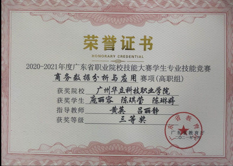2020-2021年度廣東省職業(yè)技能大賽商務數(shù)據(jù)分析與應用賽項三等獎