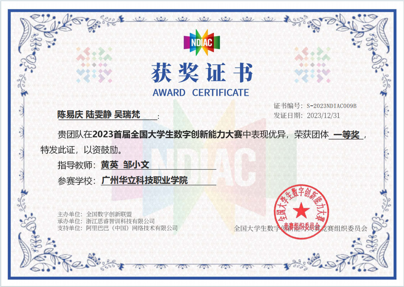 2023首屆全國大學生數(shù)字創(chuàng)新能力大賽一等獎