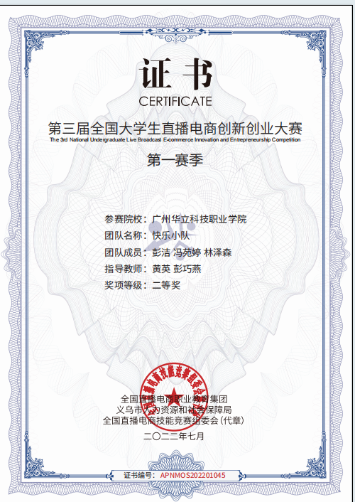 全國大學生直播電商創(chuàng)新創(chuàng)業(yè)大賽二等獎