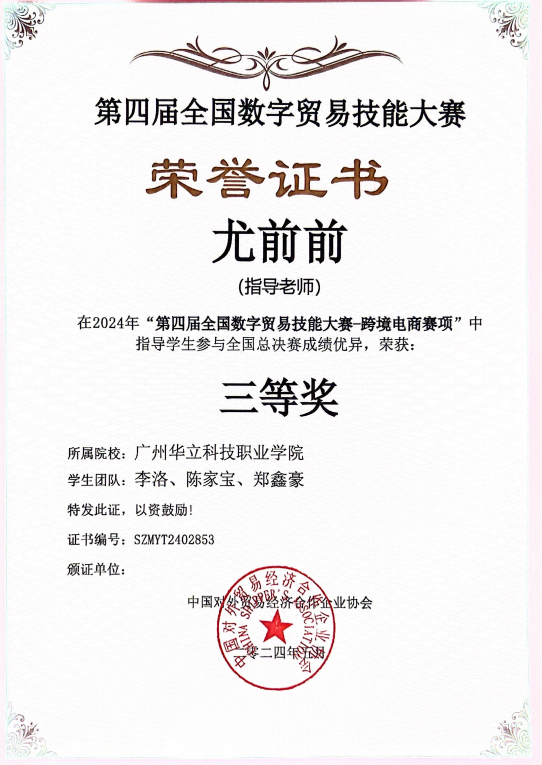 2024年“第四屆全國數(shù)字貿(mào)易技能大賽-跨境電商賽項”全國總決賽三等獎