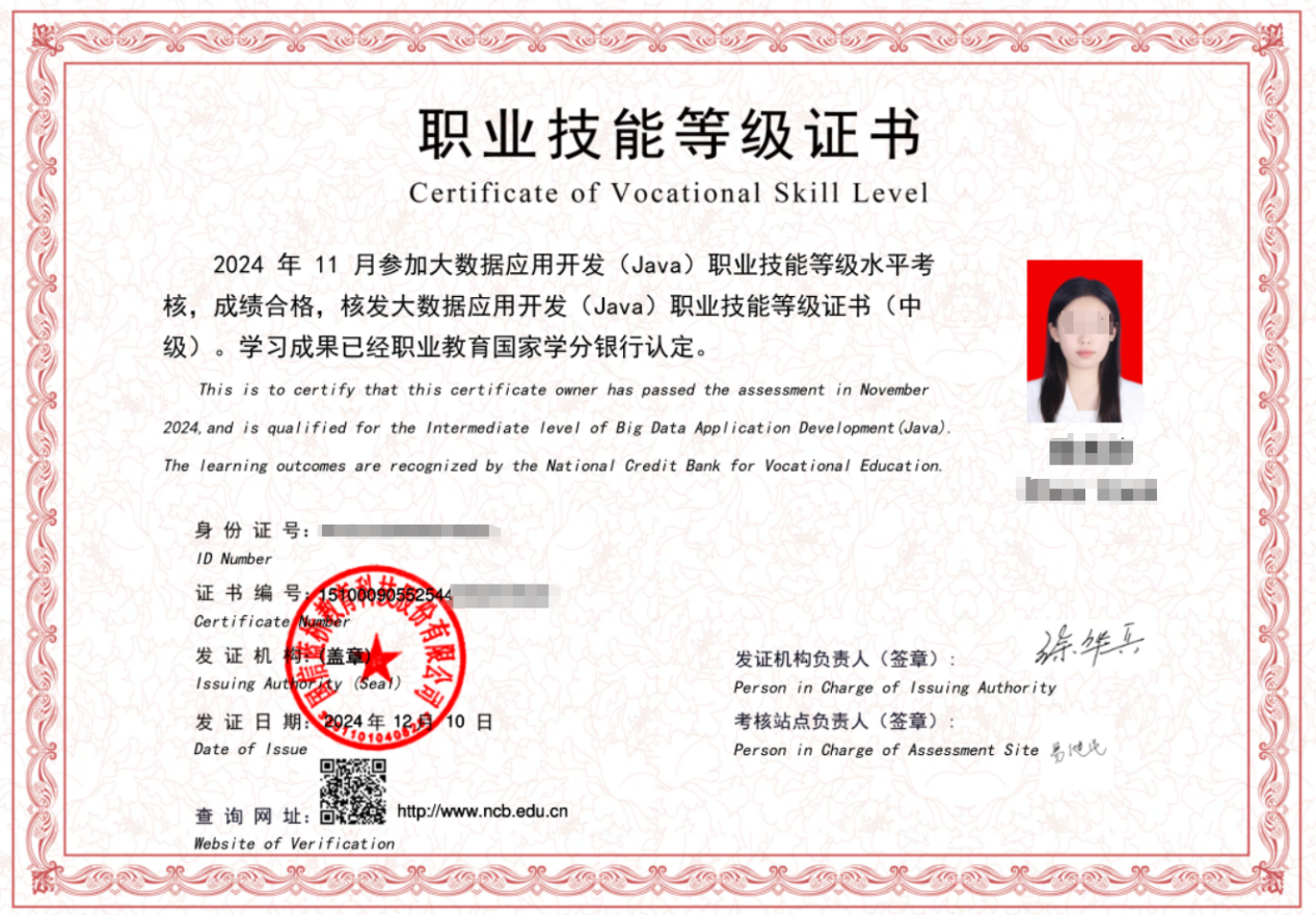 國家“1+X”職業(yè)等級證書:網(wǎng)絡(luò)安全評估(中級)、大數(shù)據(jù)應(yīng)用開發(fā)(JAVA),考證通過率高達90%以上;各種行業(yè)證書,如:華為HCIP證書;國家計算機等級考試證書。